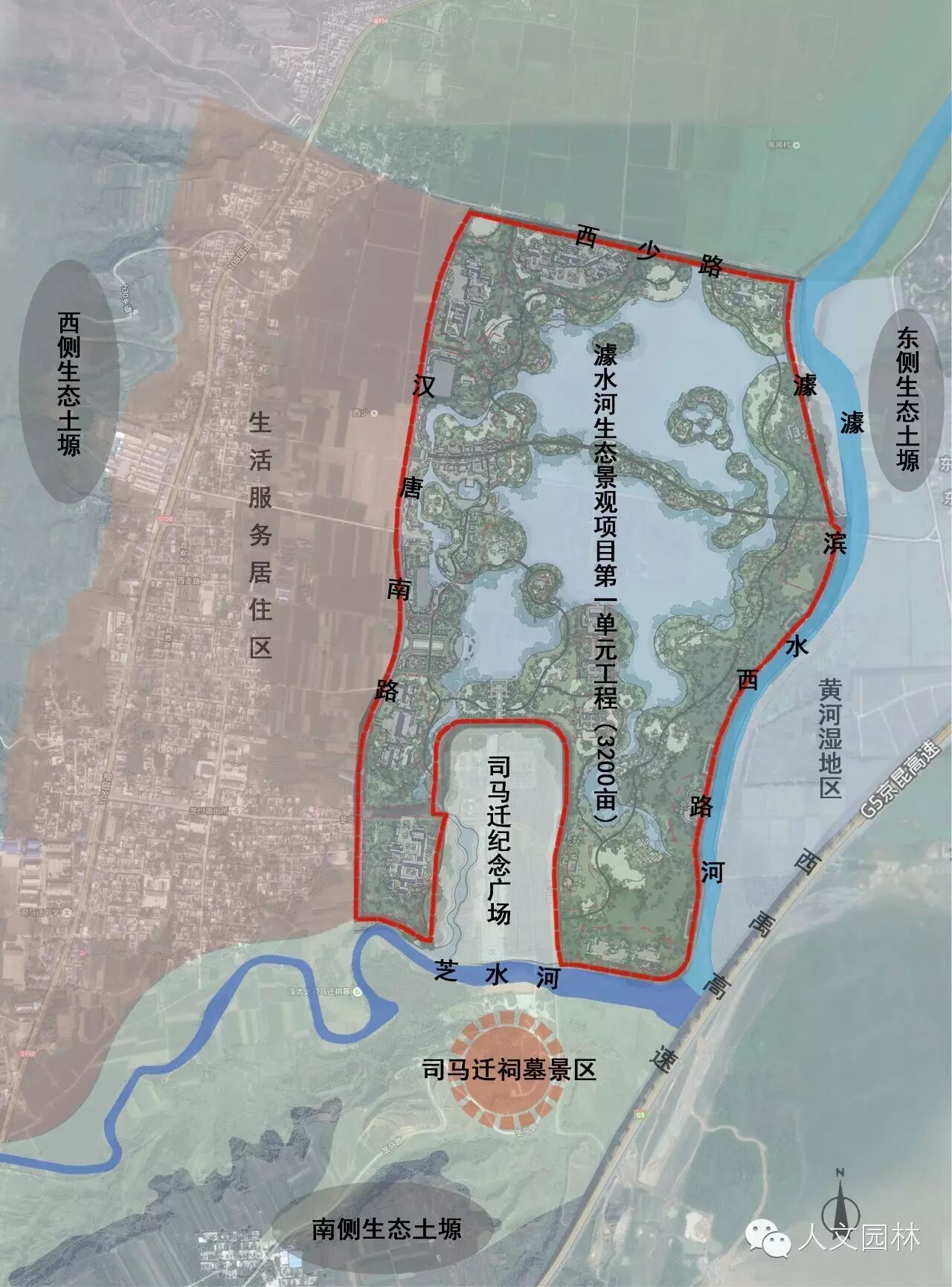 国家文史公园东至澽滨西路,西至汉唐南路,南至司马迁广场,北至西少路,总面积约3200亩。